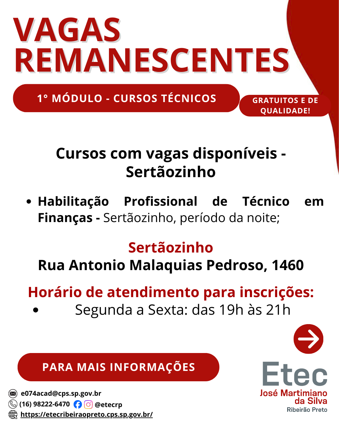 • Técnico em Finanças – Noite, na cidade de Sertãozinho