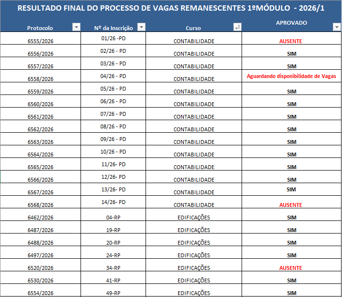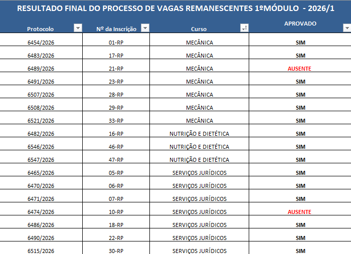 Resultado Final do Processo de Vagas Remanescentes – Cursos Técnicos Modulares – 1º Semestre de 2026