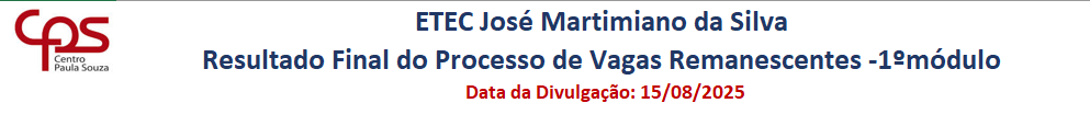 Processo de Seleção de Candidatos para preenchimento de vagas remanescentes para o 1º módulo (de acordo com cada matriz curricular) dos Cursos Técnicos em: ETEC JOSÉ MARTIMIANO DA SILVA – RUA TAMANDARÉ, 520, CAMPOS ELÍSEOS […]
