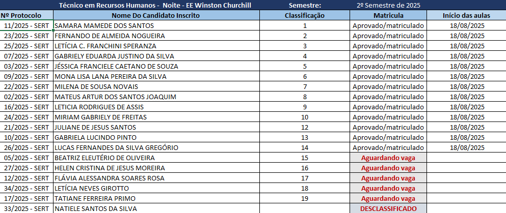 Edital – Contabilidade e Recursos Humanos – Classe Descentralizada E. E. Winston Churchill